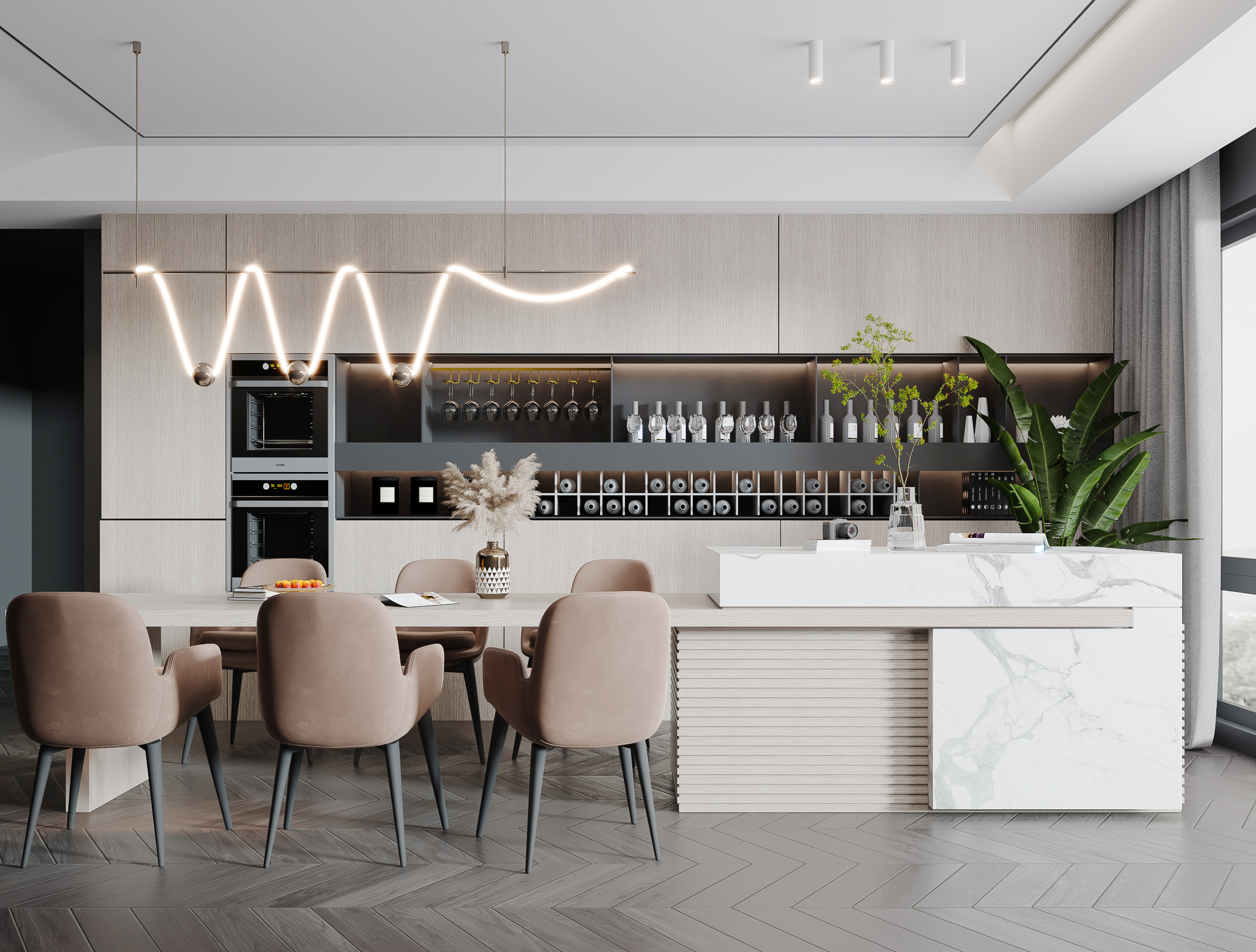 Modern Melamine Luxury Glossy Customized Grey Lacquer Island Design Modular Kitchen Design