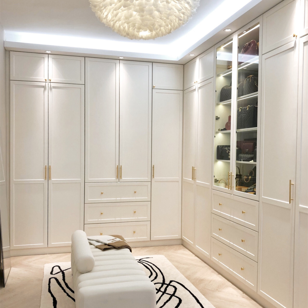 Tempered Glass Wooden Doors Modular Bedroom Wardrobe Closet