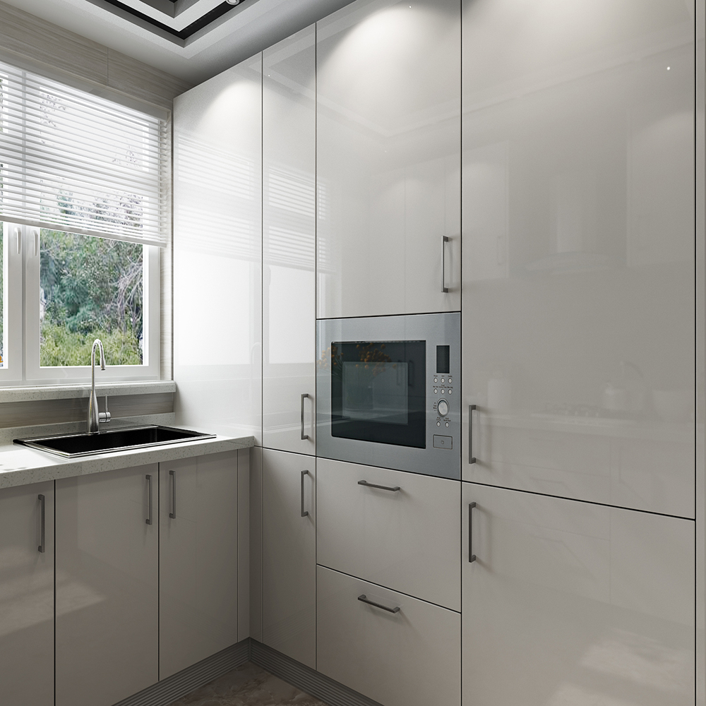 High Glossy Lacquer Finished L Shape Custom Made Plywood Kitchen Cabinets