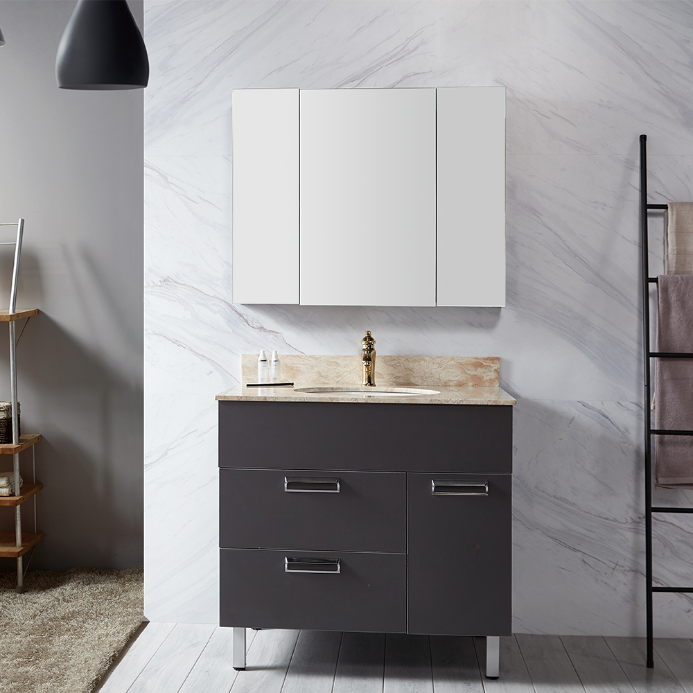 Bathroom Furniture Floor Mounted Classic Plywood Vanity With Mirror Cabinet